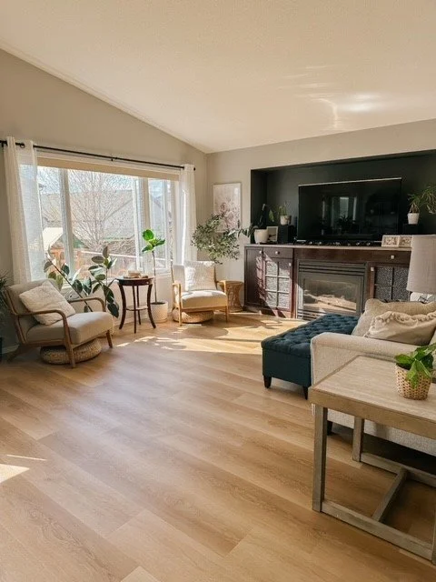 It’s incredible what one renovation can do to change the entire feeling of a house. Since moving in 10.5 years ago, I always struggled with the flooring in this house. The separation or carpet and linoleum tile left the space feeling so cluttered and with this sort of separation that I really didn’t want my open concept home to have. After 10 years, I decided an upgrade was in order!