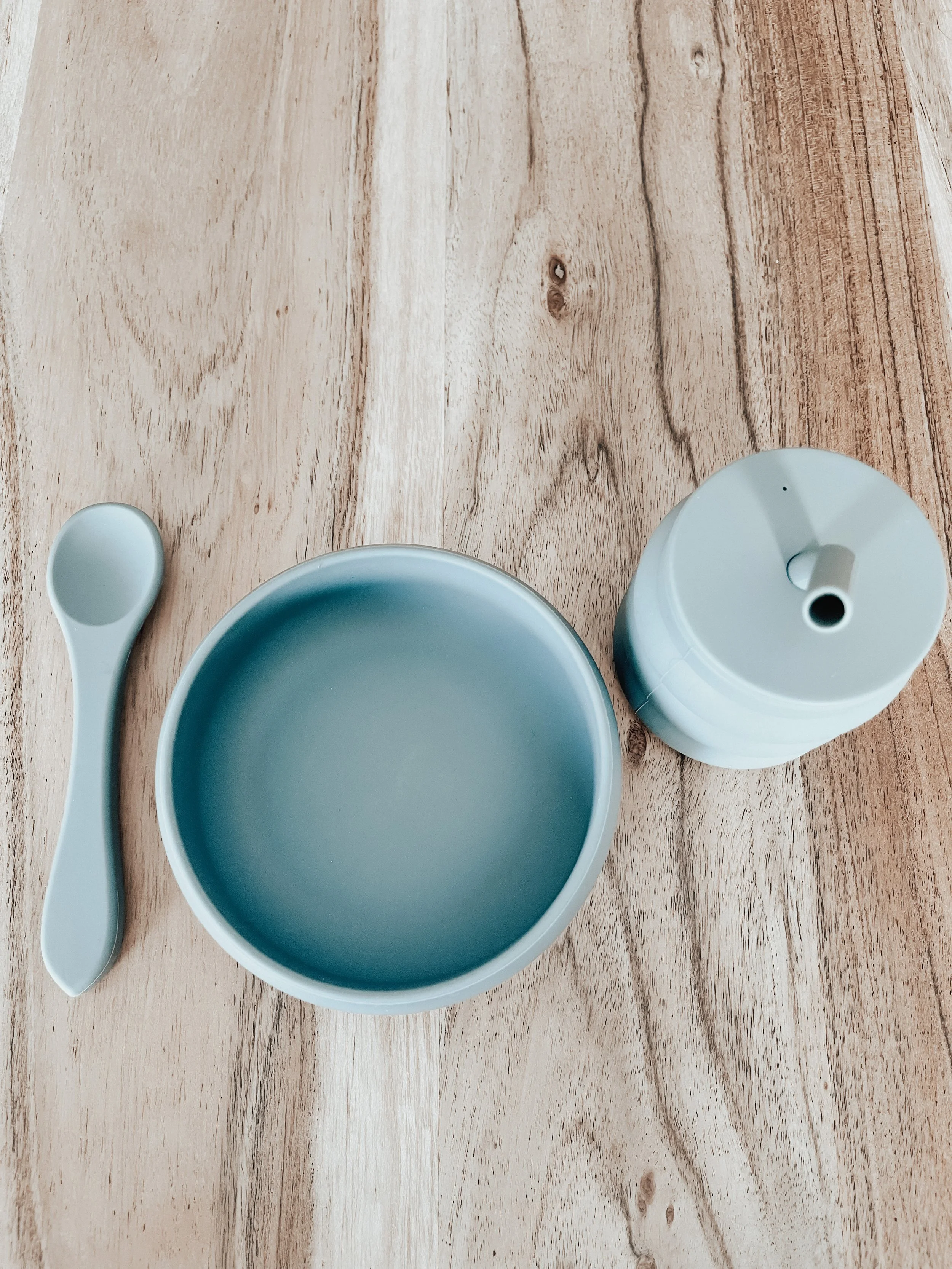 The style of the bowl and cup make it easy for young children to grab onto, and helps give your child some independence while learning to use tableware. I wish I had these when Mase was first starting out, but am excited to use them with Noah!