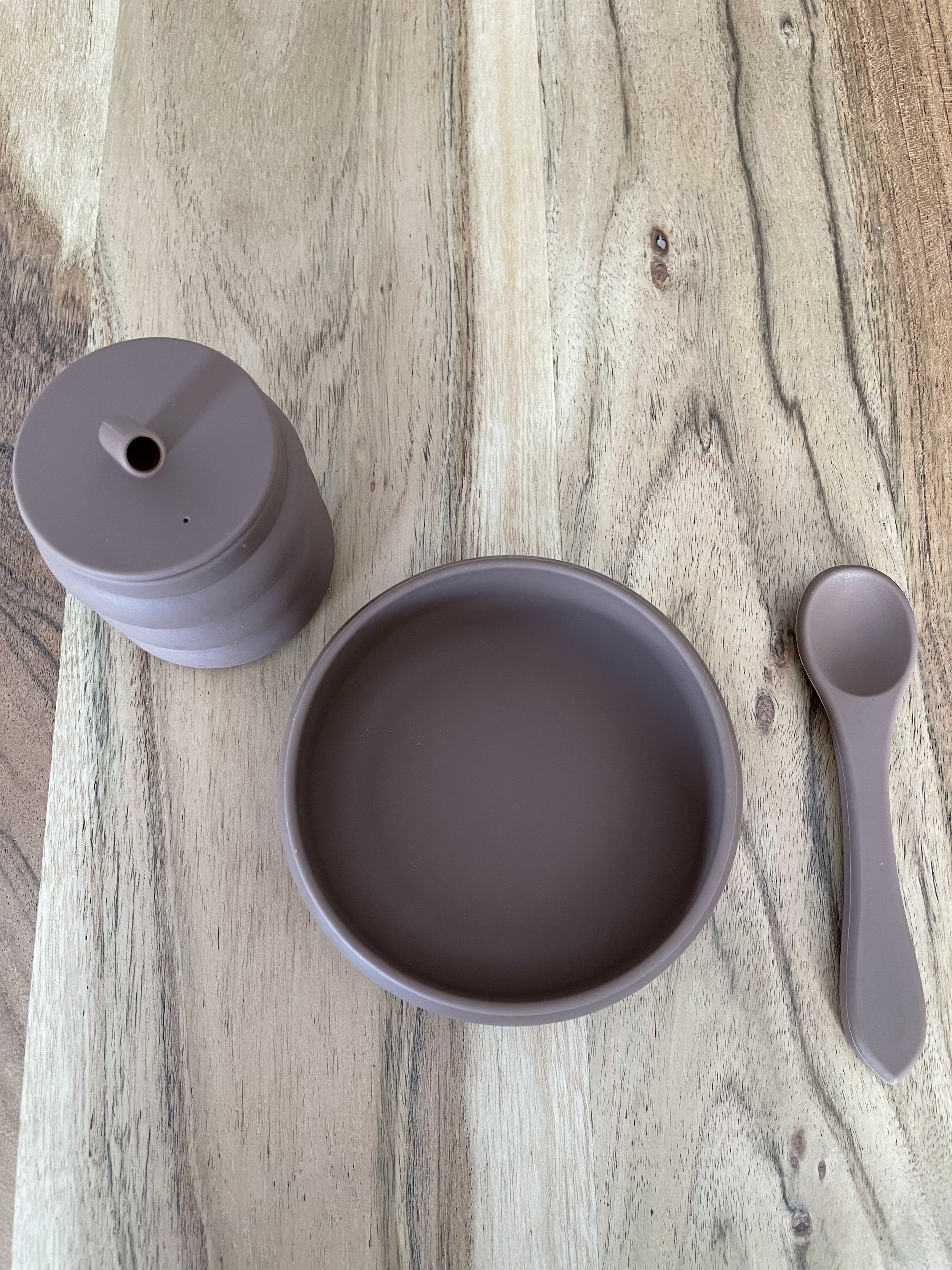 The sets are all silicone based which makes them microwave friendly! They’re un- breakable and so easy to wipe down.